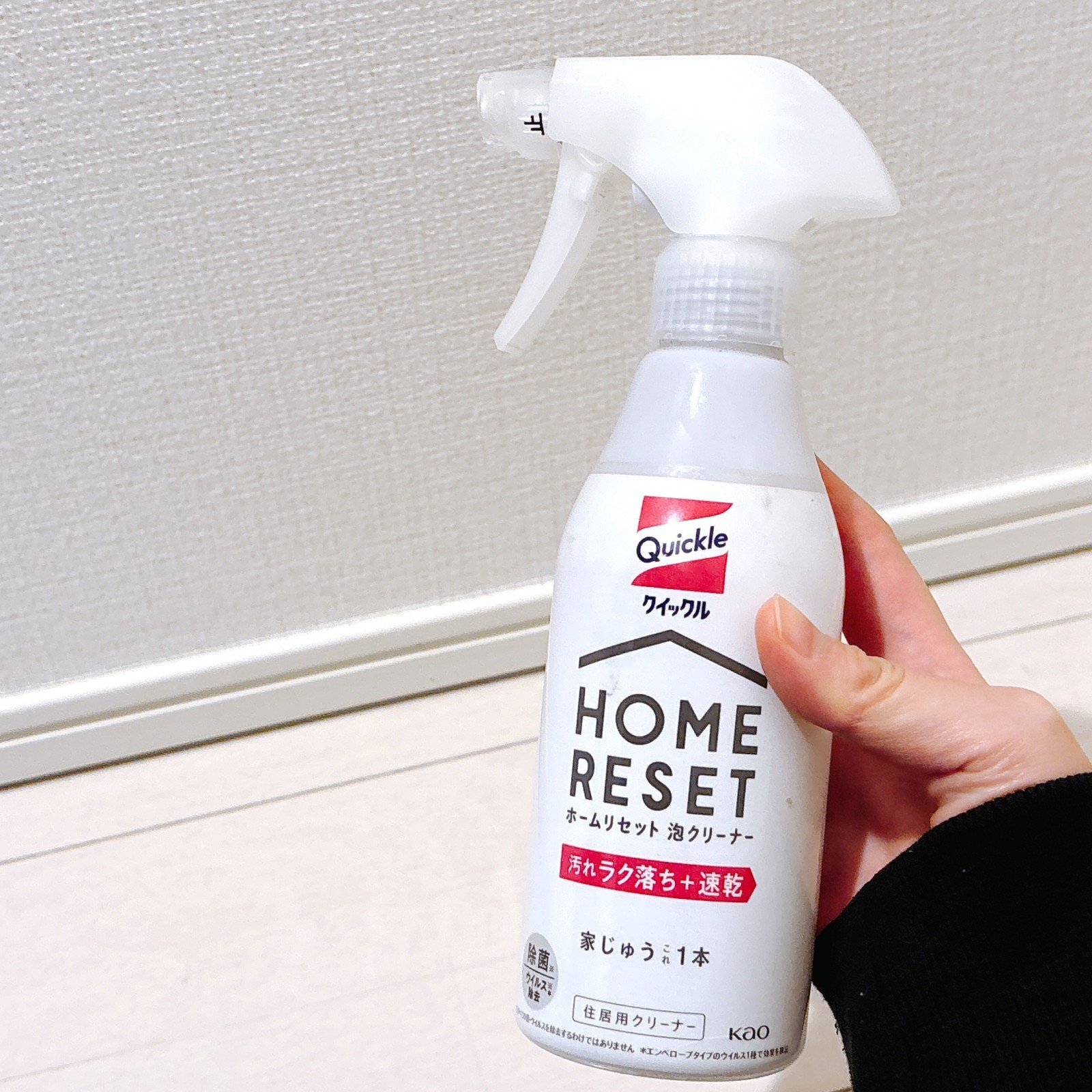 巾木の掃除方法はいろいろありますが、今回は“とにかく手軽にできる”方法をご紹介します。花王の「クイックル ホームリセット」と綿棒を使います。