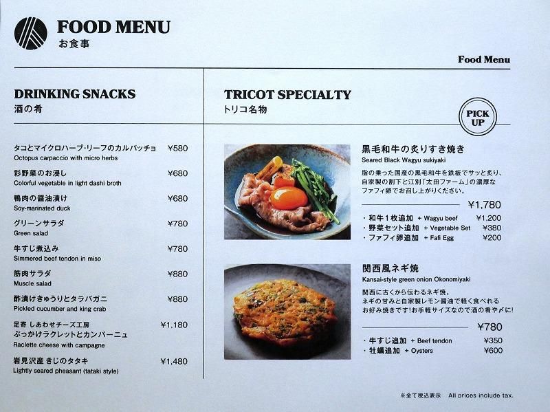 こちらはフードメニュー。