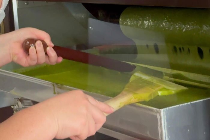 山甚さんでは、無農薬・有機栽培の碾茶(和束産100%)を店内で石臼挽きされています。