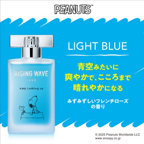 今回の限定フレグランスは、2025年にブランド誕生20周年を迎える「ライジングウェーブ」のアニバーサリーイヤーを飾る特別なコレクションです。PEANUTSコミックに登場する「Keep looking up… That’s the secret of life.(人生を通して前向きな気持ちを持ち続けよう)」というメッセージは、「ライジングウェーブ」が掲げる“前向きな自分らしさ”というブランドコンセプトと共鳴します。