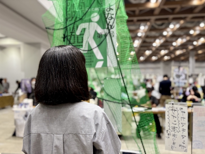 長野県から今回で2度目の参戦だという詩人の涙川さんは、自身の紡ぎだす言葉をよりビビッドに伝えるべく、毛筆を使った文字表現に独学で打ち込んできたと語る。ブースのインパクトがすごいですね! と伝えると「ちょっと怖かったですかねー? 人がなかなか寄ってきてくれなくて」と眉を下げ、それでも後悔は無いとばかりに笑っていた。文学フリマでは、大前提として作家自身による対面販売が推奨されている。この人からこの表現が出てきたのか〜、なんて想いを馳せるのもまた、醍醐味の一つである。