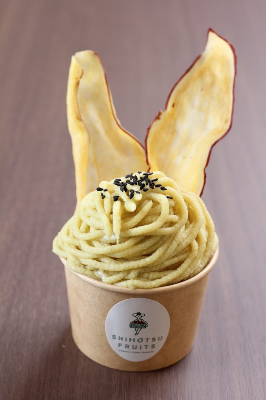 ショーケースに並んだ商品だけでなく、「生フルーツのグランパフェ」(果物は季節により変更あり)や「さつまいもの生しぼりモンブラン」など、オーダーメニューもありますよ。イートインスペースやテラスで味わえます。