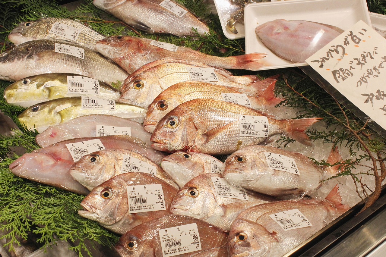 「鮮魚コーナー」では戸坂をはじめ、冷水、大崎、塩津、下津の海南市内にある5つの漁港を中心に、地元の漁師さんから直送で仕入れた新鮮な魚介を買うことができます。
