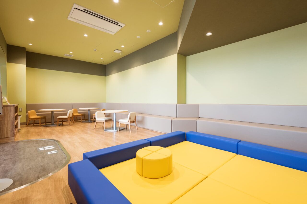 小さな子ども連れのファミリーが気兼ねなく食事できるようにと設けられたキッズコーナー「こどものえき」。その横には子どもトイレと授乳やおむつ替えに使えるベビールームもあり、赤ちゃんや小さい子ども連れのお母さんも安心ですね。