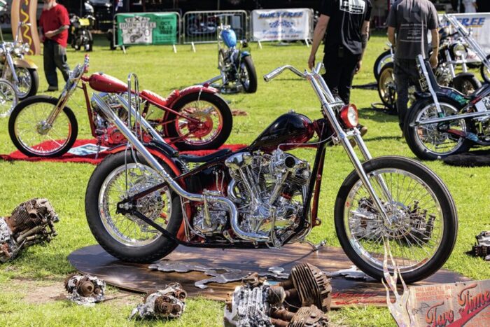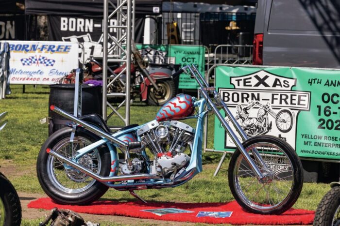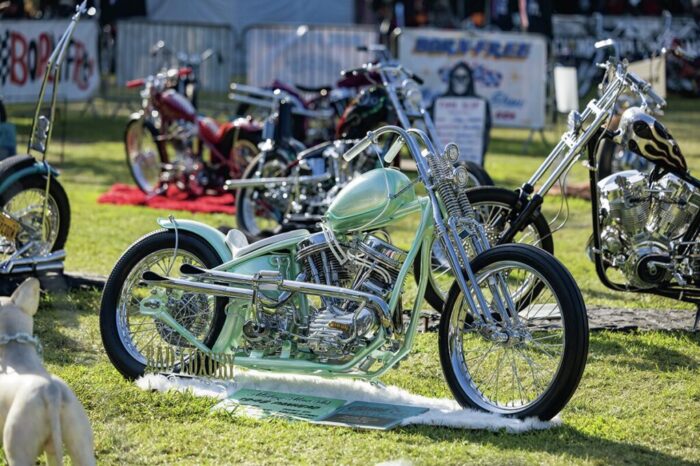 また、ショーにやって来る来場者たちのマシンもまた興味深い。近年はスポーツスターのチョッパーが多く、旧車やビッグツインが高騰する中、安価なスポーツがベースに多く選ばれているようだ。