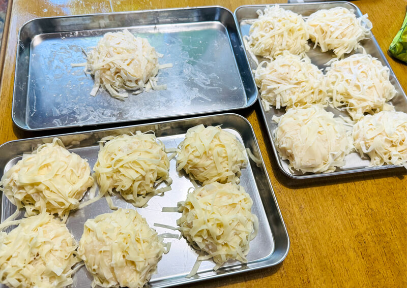 ペーストが硬いと出来上がりも硬くなります。丸めにくいくらいの柔らかさのある程度が美味しく作るコツです