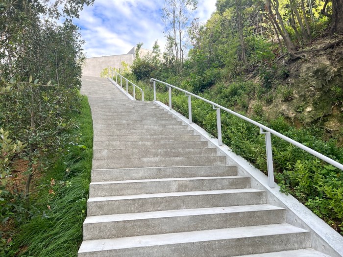 本村地区には他にも見どころがある。「直島新美術館」もその一つだが、建物まで辿り着くには なかなか過酷な階段を上らなければならない。