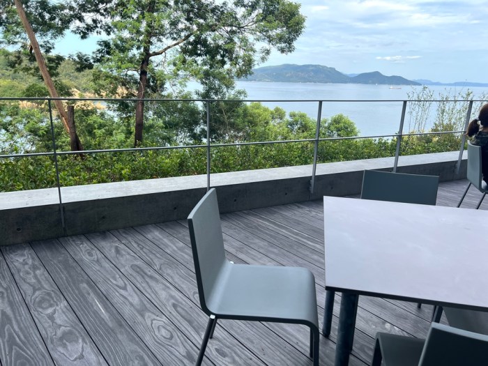 今回は時間の関係で美術館の中には入らなかったが、併設されているカフェは瀬戸内海を一望できて最高のロケーションだった。
