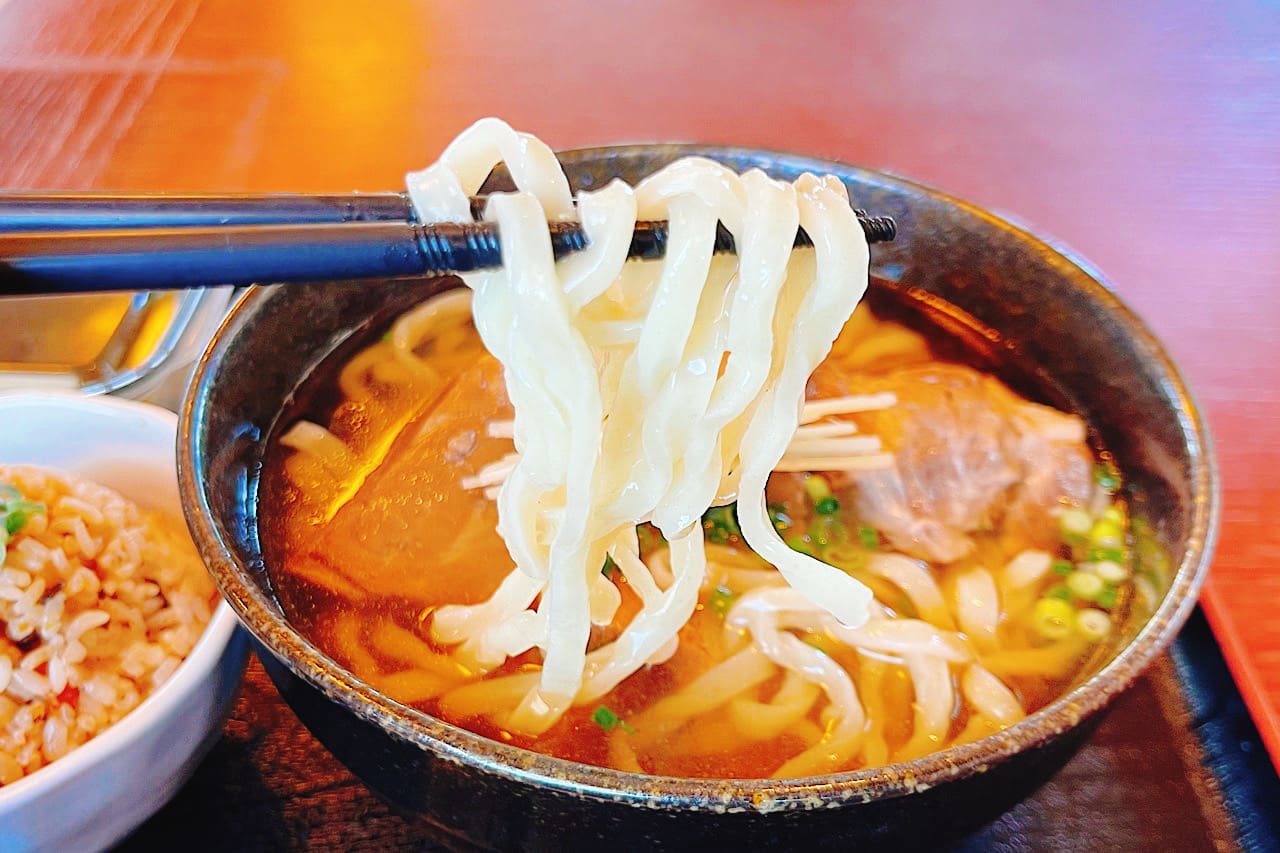 13時間かけて作られる「クガニ(黄金色)スープ」は、カツオブシ、豚骨、野菜などをじっくり煮込み、ていねいに旨みを引き出しています。カツオブシの風味をしっかりと感じ、コクがあり滋味深く、一口目から「おいしっ!」が止まりません。 気がつけば、あっというまに最後の一滴まで飲み干してしまいました。