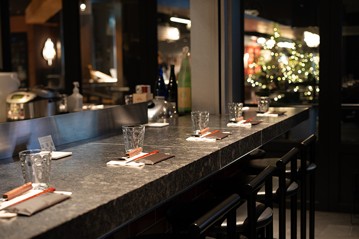 店内はこれまでのお好み焼きのイメージとは一線を画す、カウンターを基本とした高級感あふれる内観です。