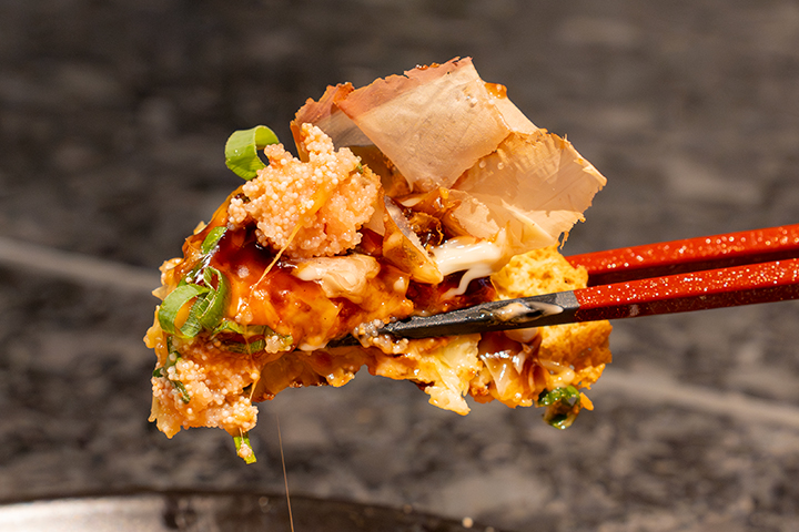 一口食べると、生地のふわっと、とろっとした食感に魅了されました。厚みがあるのに、口の中でとろけていくようなお好み焼きです。
