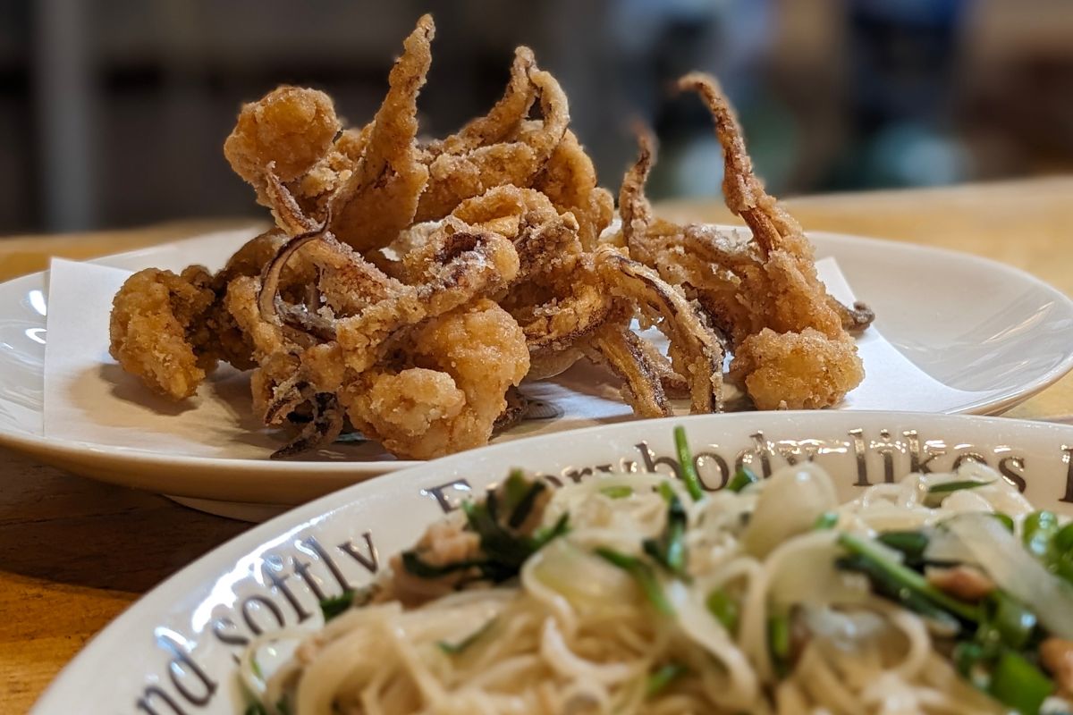 せっかくなので、沖縄料理もと思い、ソーメンチャンプルーとイカのゲソ揚げも。せっかくだから大人数で来て、ワイワイ食べるのが楽しそうです。