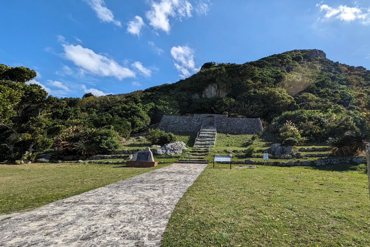 伊是名島の南東に位置する伊是名城跡。まるでピラミッドのような自然の地形を活かした城です。伊平屋島出身の佐銘川大主(さめかわうふぬし)により築城されたといわれています。 そしてそんな伊是名島の中腹に位置するのが、伊是名玉御殿(いぜなたまうどぅん)。 「あれ?『たまうどぅん』ってどこかで聞いた気がする?」と思った方もいるかもしれません。首里の「玉陵(たまうどぅん)」と同じく、こちらも陵墓。尚円王の息子である尚真王によって築かれました。 「伊是名玉御殿」には、尚円王ゆかりの人々が眠っています。施錠されているので中に入れませんが、遠くからその威容を見るだけでも何かを感じ取れるような気がするパワースポットのような場所ですよ。