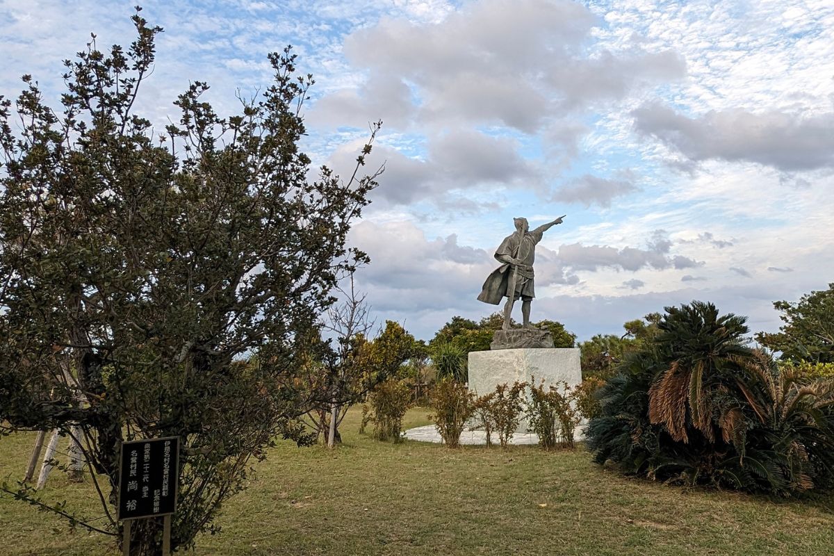 尚円王生誕580年を記念して整備された公園。尚円王出生の場所でへその尾が埋められたと伝わる「みほそ所」の背後にあります。 伊是名村出身の版画家・名嘉睦稔さんによる若き日の金丸(尚円)像はフェリーの絵にもなっていて「少年よ、大志を抱け」のクラーク像のようなポージング。名嘉睦稔さんといえば、美浜アメリカンビレッジの「ボクネン美術館」を構えるアーティスト。こちらもぜひ今度取材したいですね。
