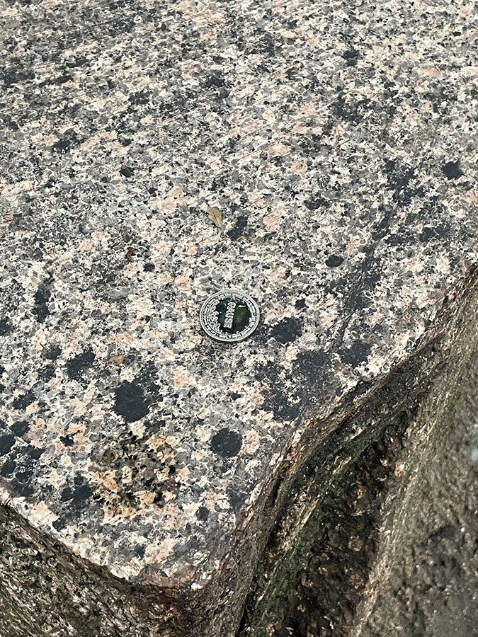 西川緑道公園のニコラ・ベッカーの作品のまえのベンチで見つけたコイン!思わずガッツポーズ