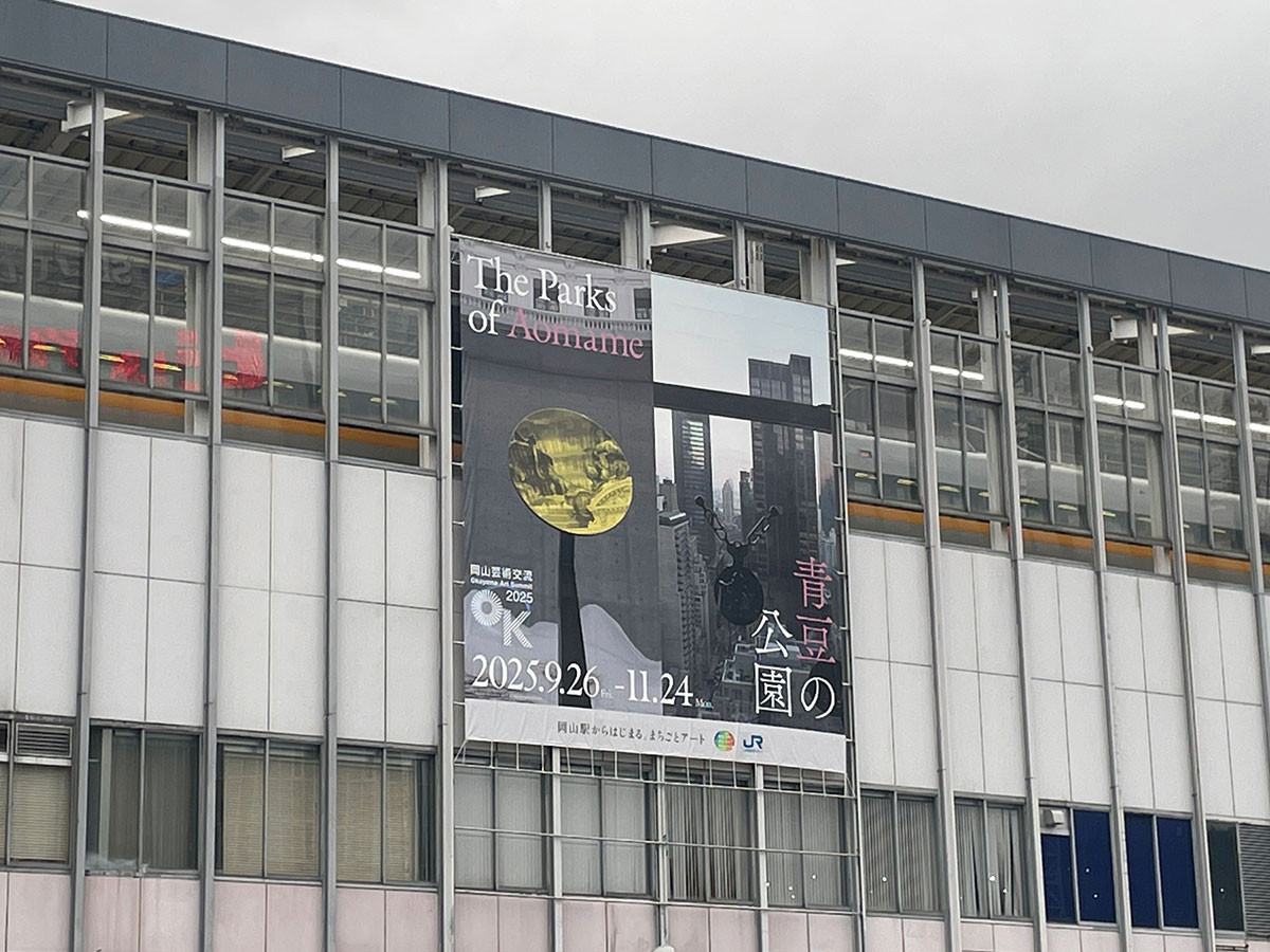 3年に一度開催される現代美術の展覧会「岡山芸術交流2025」が9月下旬に幕を開けました。今回は11ヵ国30組のゲストが参加。展示会場はおなじみの旧内山下小学校、岡山県天神山プラザなどに、西川緑道公園や旧西川橋交番の岡山駅に近い場所も加わり、広がりを感じます。