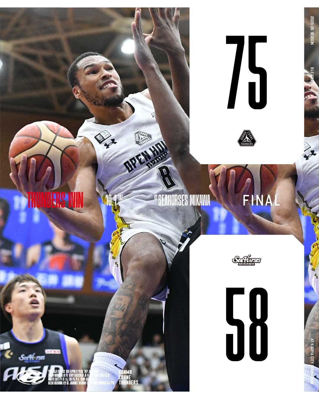 Bリーグの開幕ゲームは、群馬クレインサンダーズがシーホース三河を相手に、ディフェンスとリバウンドの強みを発揮し、見事な勝利を飾りました!