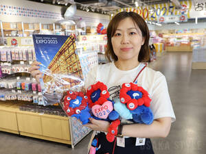 大阪・関西万博会場(大阪市此花区)にある「2025大阪・関西万博会場内オフィシャルストア 西ゲート店 KINTETSU」で現在、万博のシンボル「大屋根リング」をデザインに取り入れたグッズが販売されている。