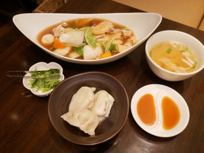 今回は「週替わりランチBセット」を注文してみました!Bセットは週替わりのメイン料理に、お店の看板メニューでもある“水餃子”が3つ、さらにスープが付いて税込1,050円という、とってもお得な内容。