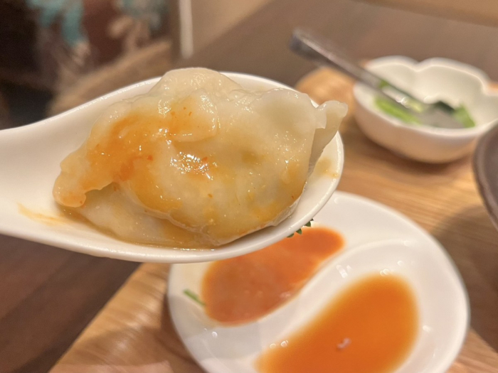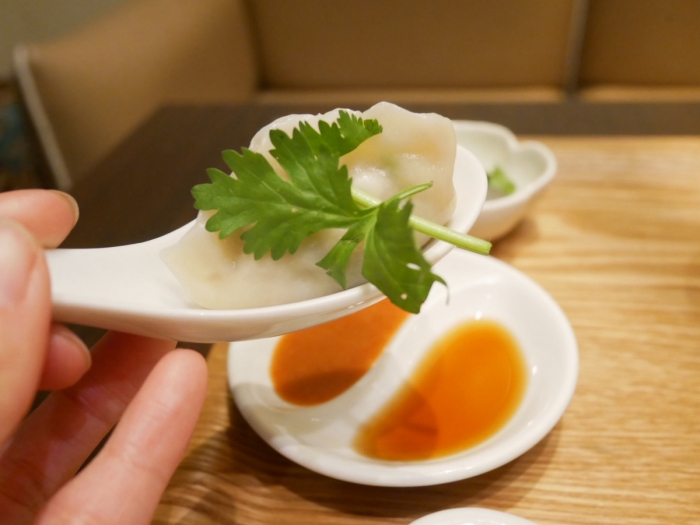 筆者はパクチー好きなので、迷わずトッピング!独特の香りが水餃子のジューシーな旨味と絡んで、味わいに爽やかなアクセントが加わります。