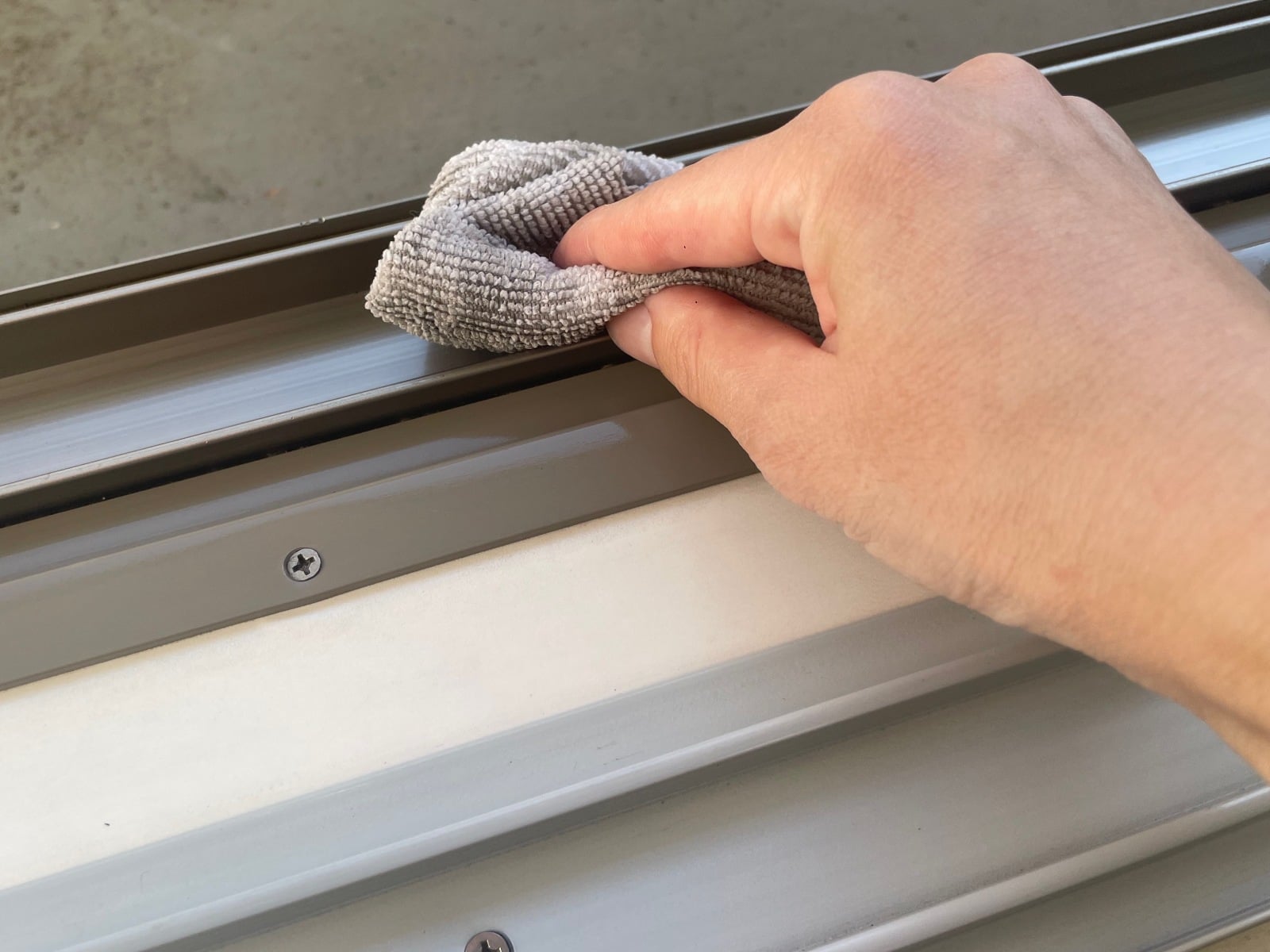 窓と網戸をすべて拭き終えたら、最後にレールを拭きます。レール部分が一番汚れていることが多いので、しっかり拭きあげて全体をキレイにしましょう。これで、窓と網戸のお掃除は完了です!
