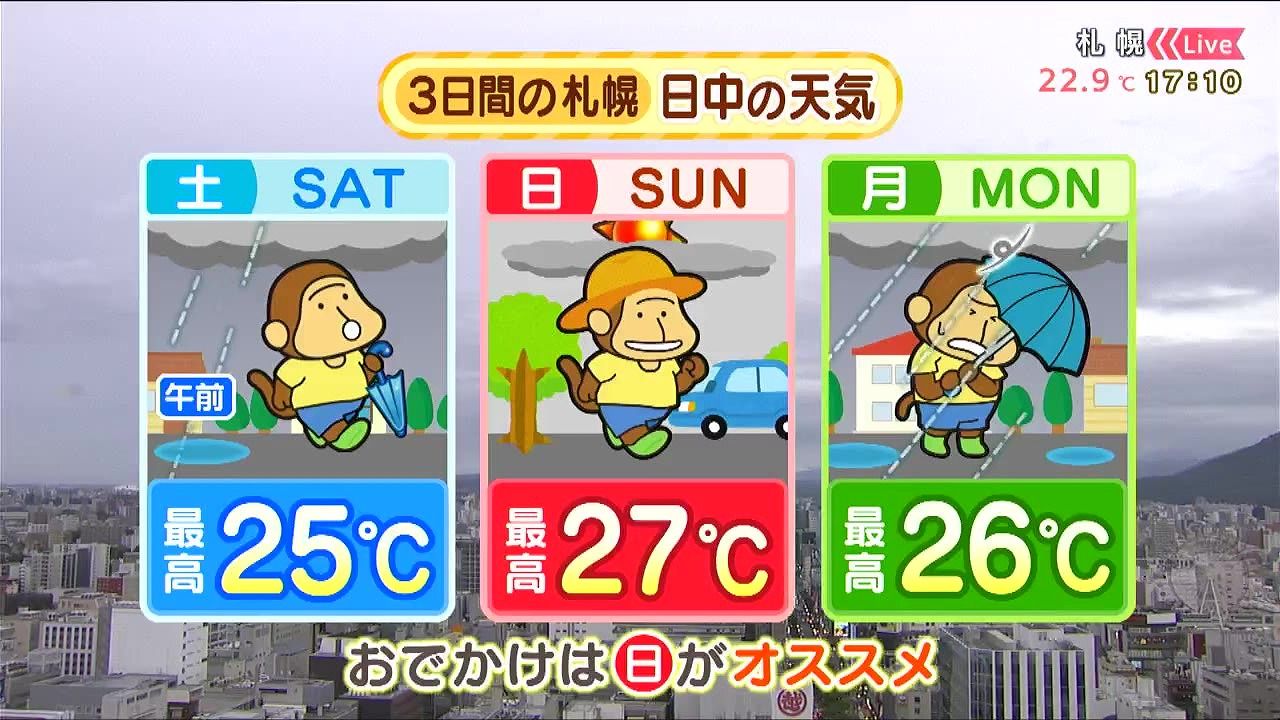 3日間の札幌です! 土日月の天気をもんすけでお伝えします!