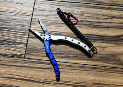 プライヤーやフィッシュグリップは歯が鋭いフグの口からハリを外すために必須。そして同様に、足元で暴れることが多いフグの鋭い歯から足を守るために長靴やブーツの方がイイね。ハサミはエサを適度なサイズにカットするのにあると便利かな」