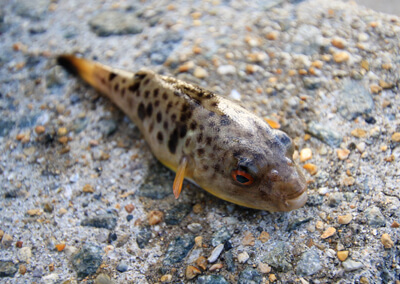 堤防から釣れるフグといえば、クサフグやヒガンフグ。ただし、持ち帰る人は少ないゲスト魚であるのが一般的