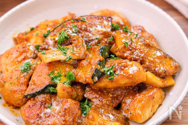 節約にも♪「かぼちゃと鶏むね肉のカレーマスタードソース」の作り方