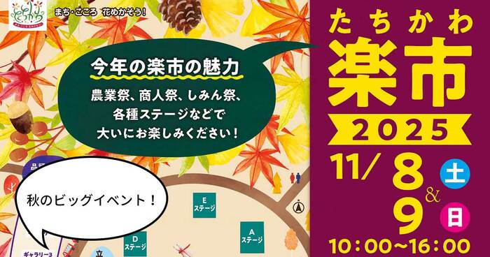 「立川しみん祭」「たちかわ商人祭」「立川市農業祭」「国営昭和記念公園イベント」が同時開催。