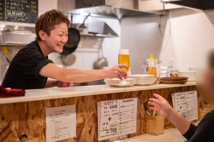 「お客さんは1日頑張った後、疲れている中でお店を訪れてくれます。せっかく来てくれたのに、疲れたままお店を出てほしくない。料理・お酒・サービスのすべてを大切にして、“今日も楽しかった”と笑って帰ってほしいです」。