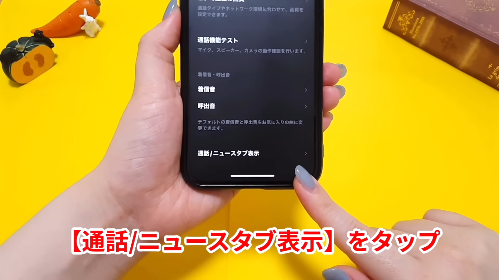 一番下までスクロールし、「通話/ニュースタブ表示」をタップすると、