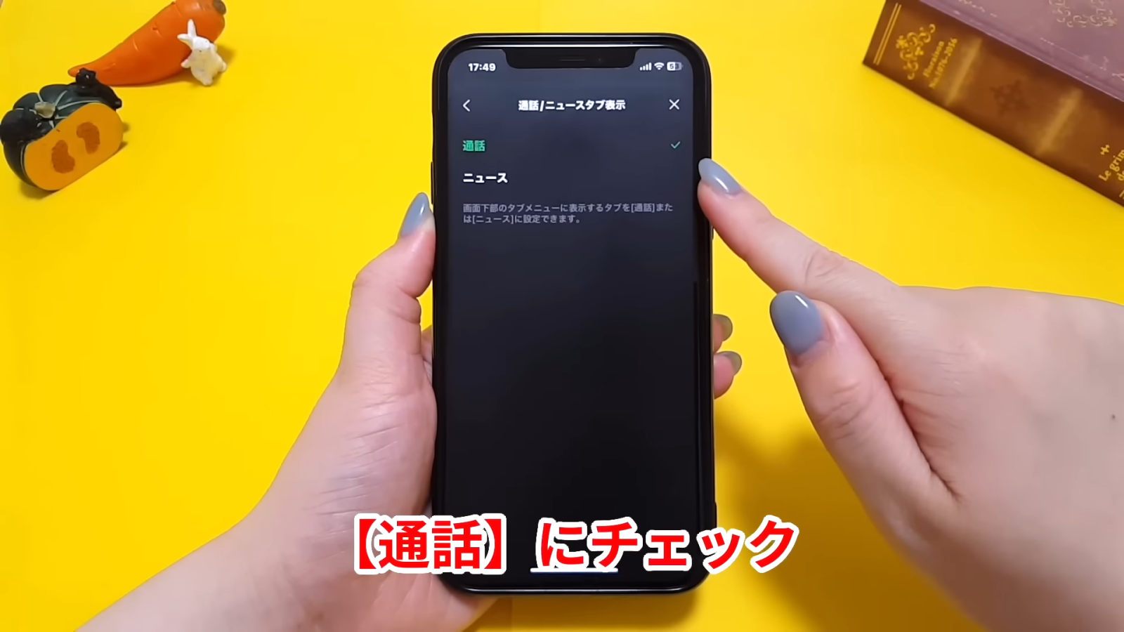 通話かニュースか、タブの表示を切り替えられるようになっています。通話タブにしたい場合は、通話をタップしてチェックを入れましょう。
