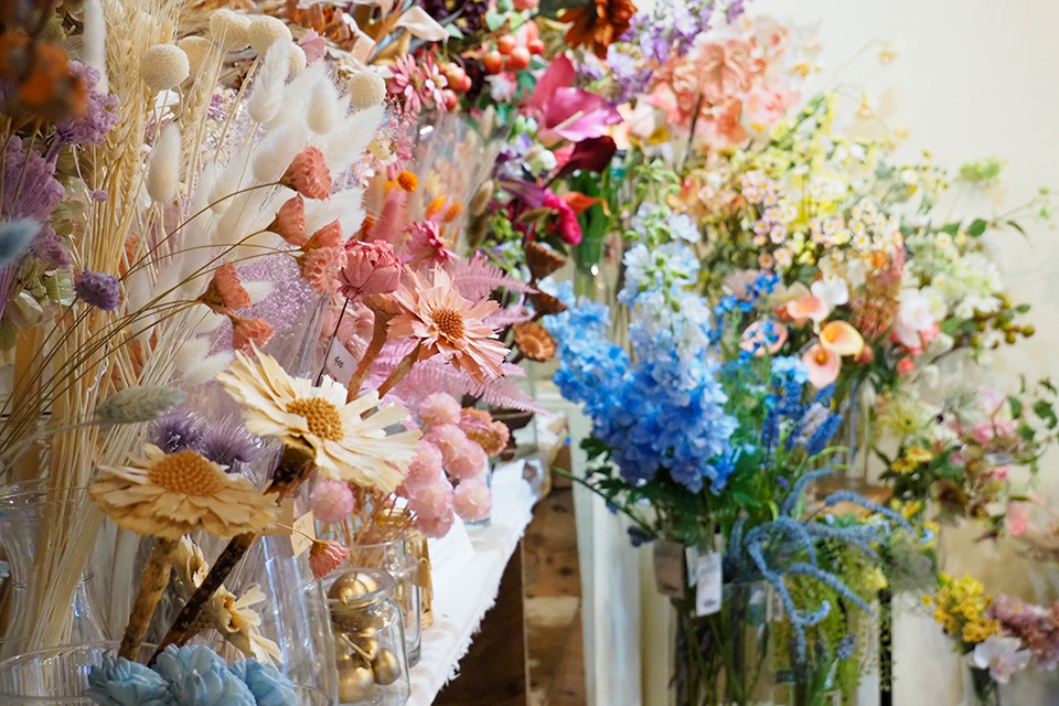 北爪さん:週末に向けて結婚式の装飾準備をして、平日はオンラインショップの商品などの制作や事務作業をします。お店はオープンしていたりしていなかったりと、ちょっと独特の営業方法かもしれないですけど、お花のロスを出すのは嫌だし、でも可愛いお花を仕入れたいしってことで、今のやり方に落ち着いています。