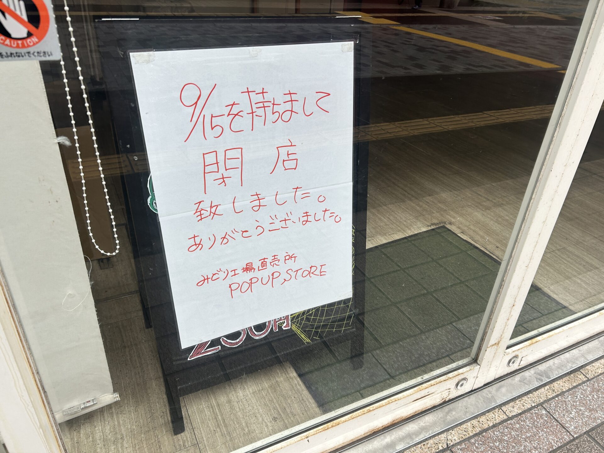 セントポルタ中央町の『みどり工場直売所 期間限定POP UP STORE』が閉店してた