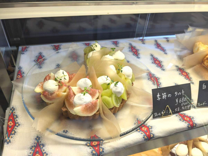 旬のフルーツを使ったタルトもあり今の時期は「いちじく」と「シャインマスカット」がのっていました。