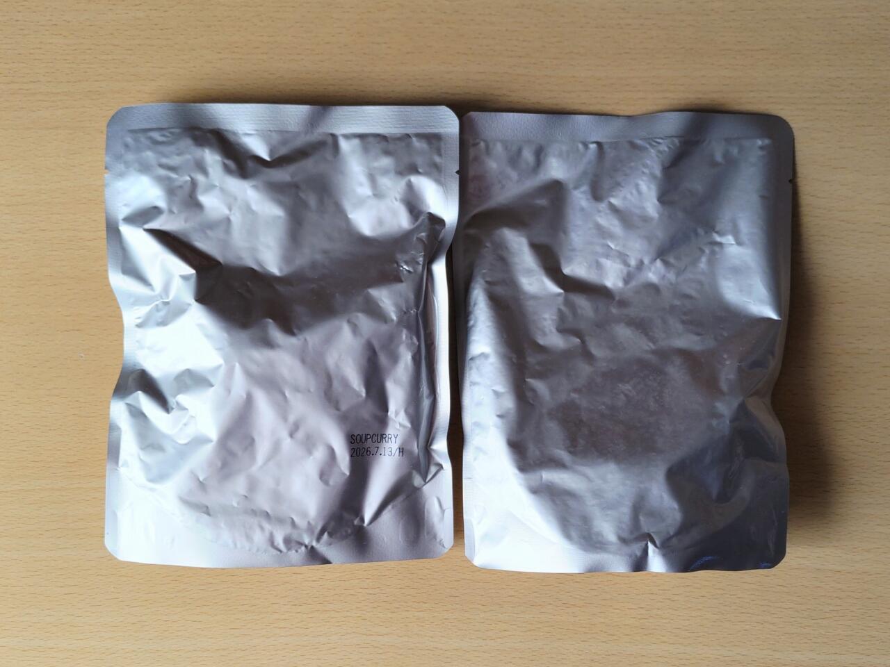 【新宿中村屋 スープカリー 1.6kg(320g×5袋) 1868円】パウチの厚みから具材の大きさがよくわかる