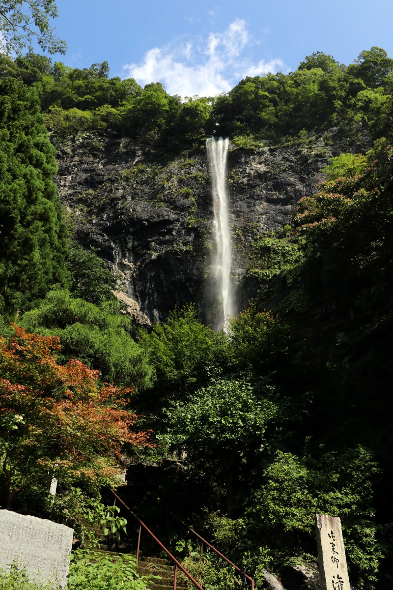 慈眼寺の下にあり、別名「旭の滝」とも呼ばれる[灌頂ヶ滝]。落差80mほどからの直瀑だ。晴天であれば8時より10時頃までは、滝の飛沫でできる虹が見られる。滝の飛沫を浴びながら滝を真下から見上げることができ、壮大さを感じられる。