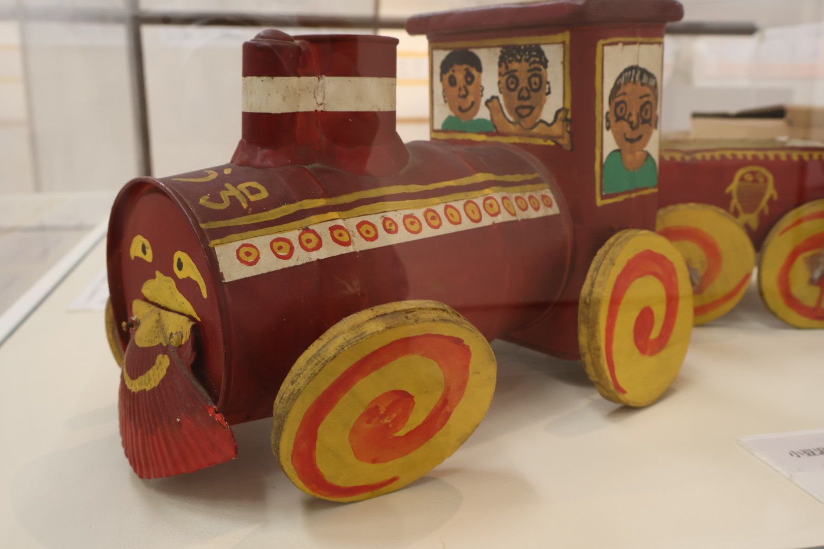 会場を半分ほど進むと、廃材を利用したおもちゃの展示コーナーにたどり着きました。