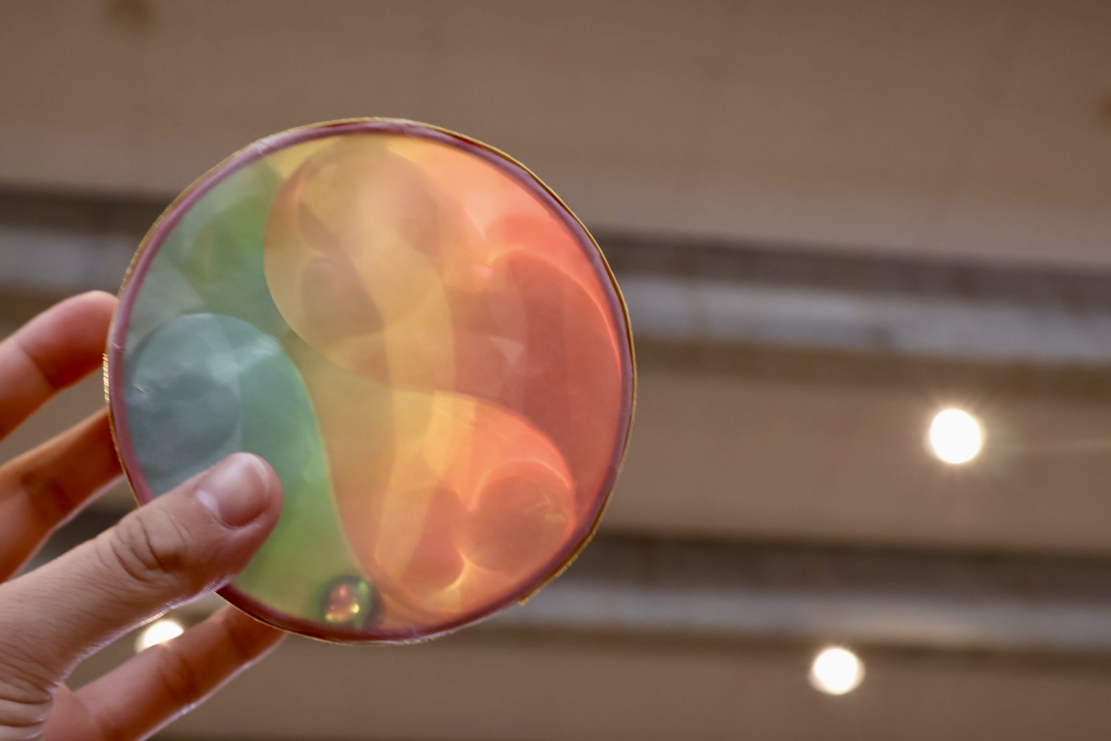 ・にじのたまご(空き缶を利用した虹色オブジェ)