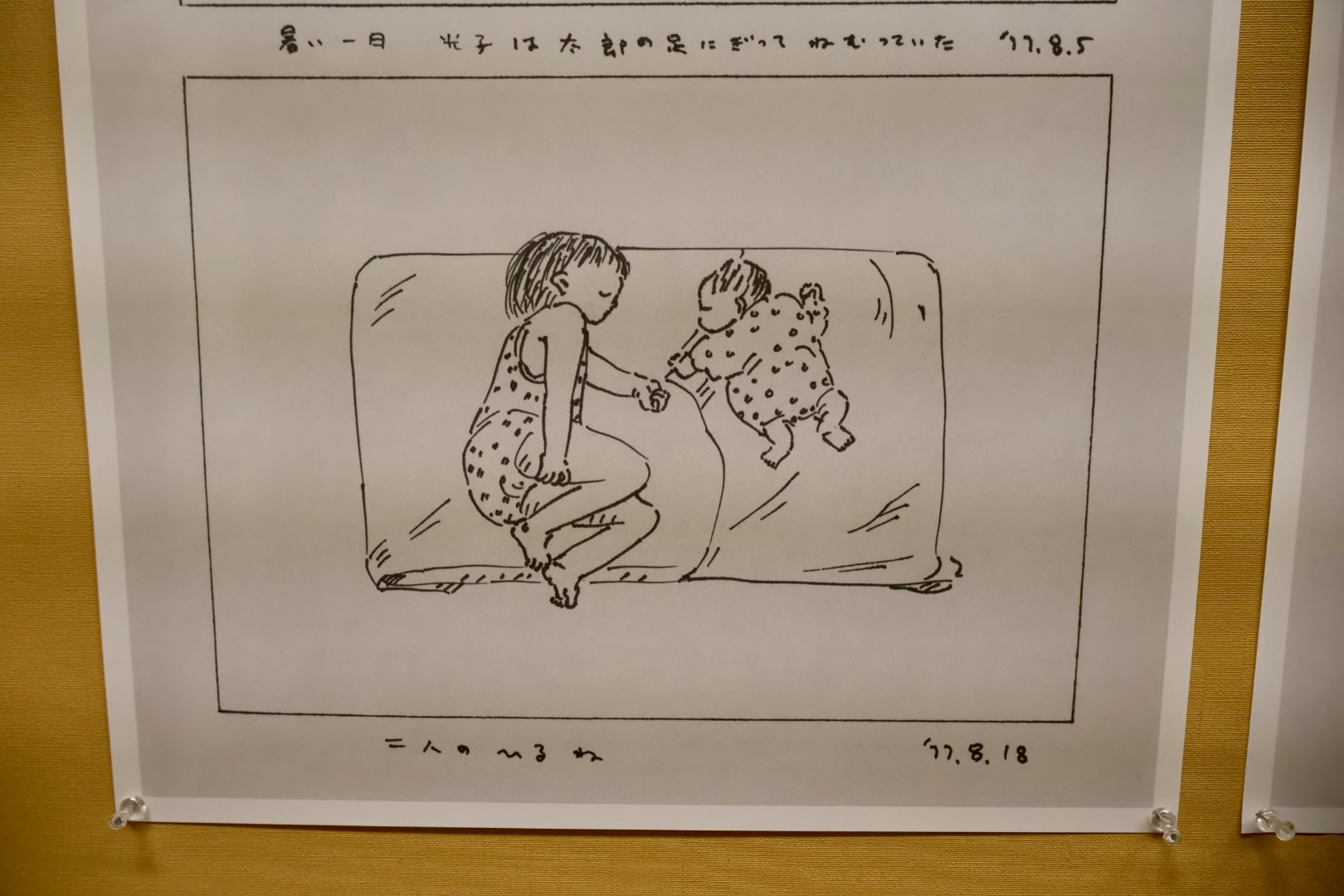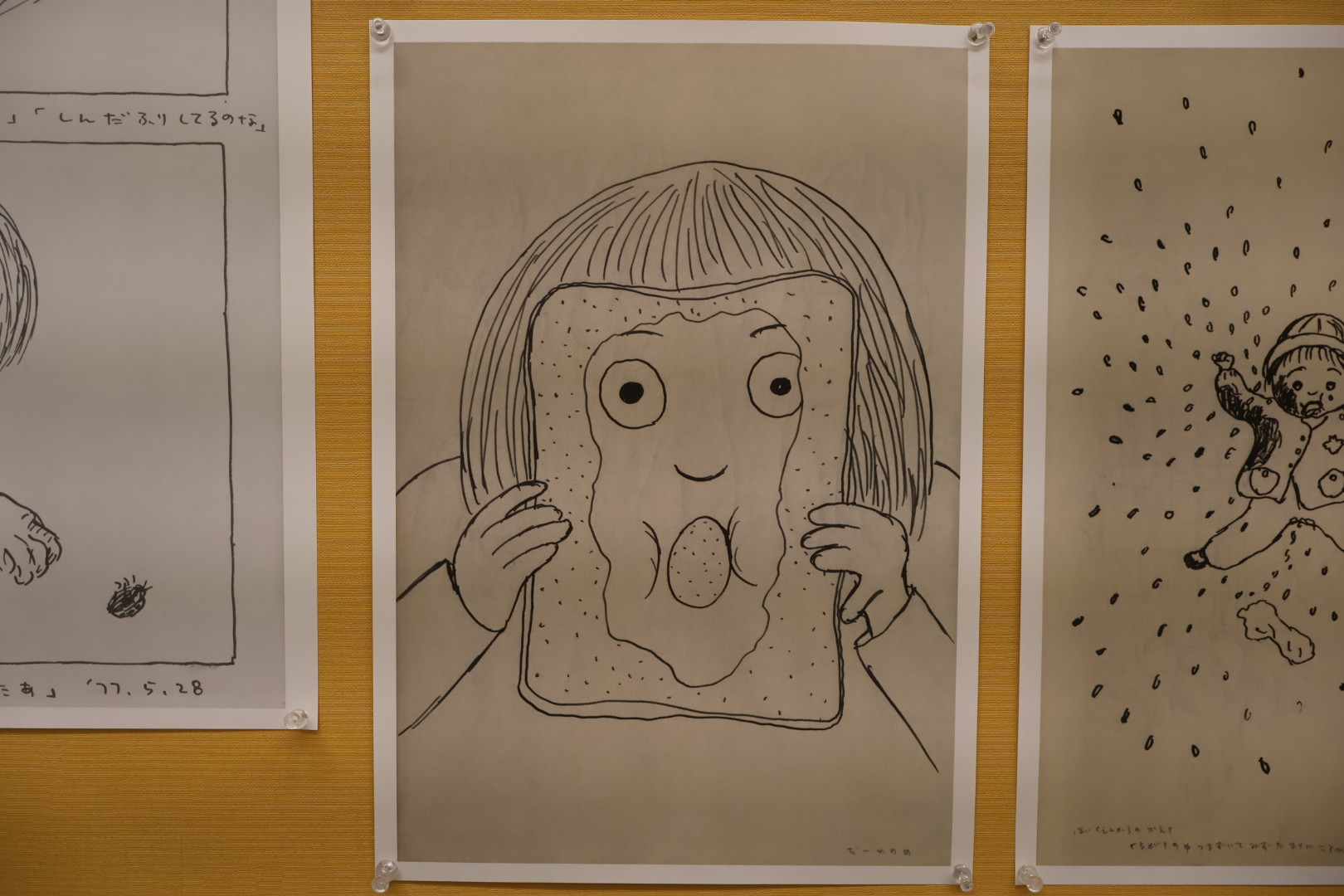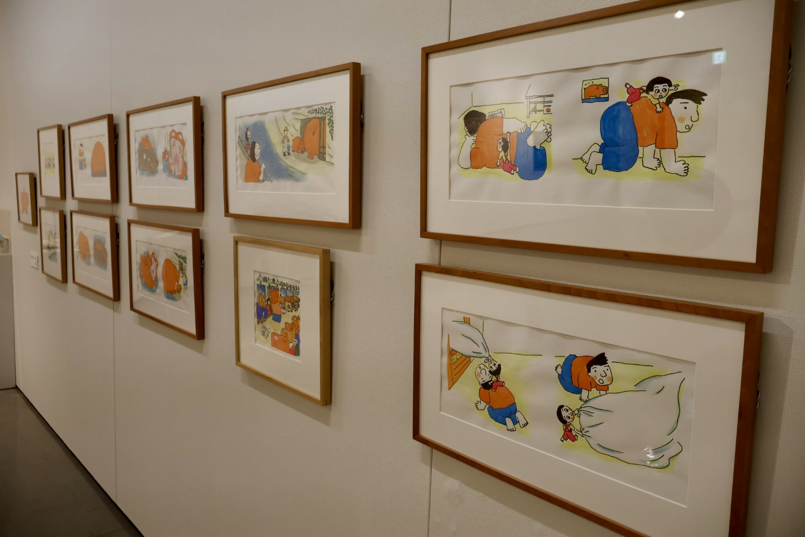 紙芝居や絵本の原画、漫画作品に加え、やべみつのりさんによる家族絵日記や、矢部太郎さんの幼少期の作品「たろうしんぶん」など、ここでしか見られないような貴重な資料が並んでいます。