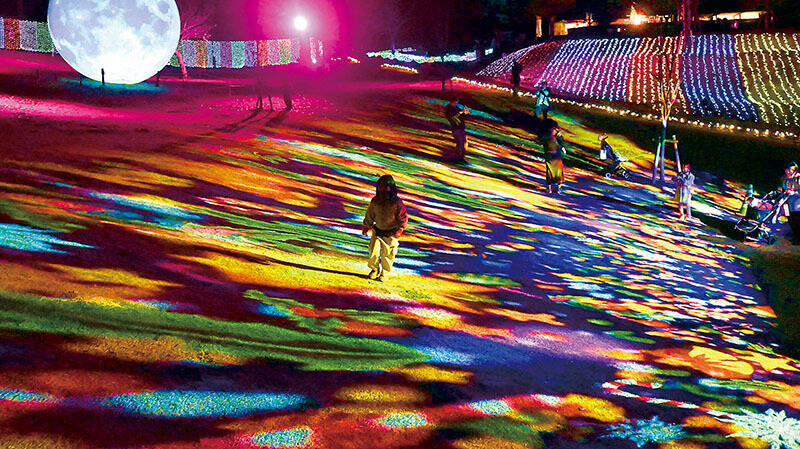 観賞がメインのイルミネーションとは異なり、来園者の「歩く」「手をかざす」「触れる」といった動作に反応し、変化する光や音、映像、プロジェクションマッピングなどを楽しむ。