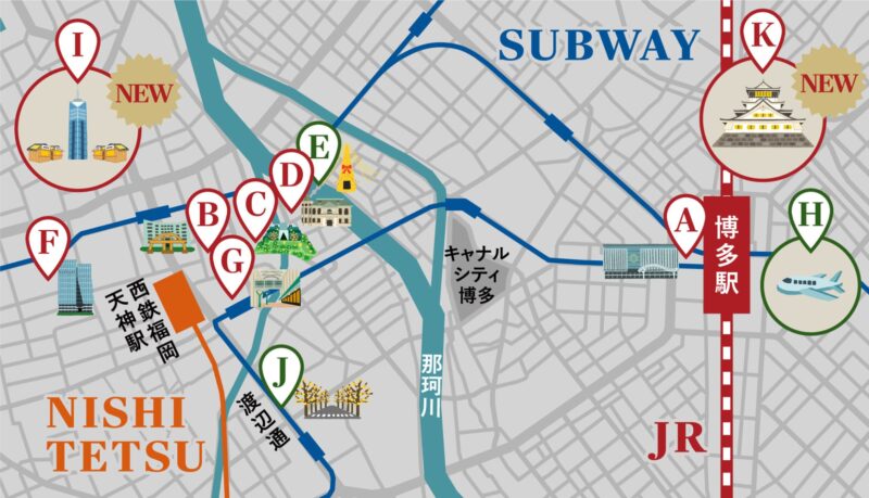 中洲中央通り・明治通り・福博であい橋 [MAP]
