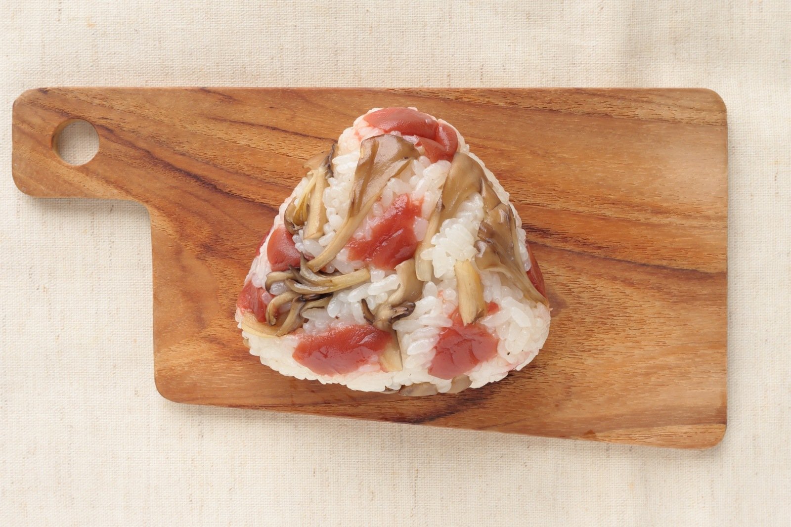 まずおにぎりの具材として用意するのは、定番具材の「梅干し」です。そして梅に合わせる食材が、秋の味覚「まいたけ」です。旨味たっぷりで食物繊維が豊富なまいたけは、美味しく食べながら腸のケアも叶います。そして実は、梅との相性もぴったりなんです。