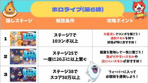 妖怪ウォッチぷにぷにで開催中の「ホロライブコラボ第6弾」のイベントマップに登場する隠しステージの解放条件を紹介します。