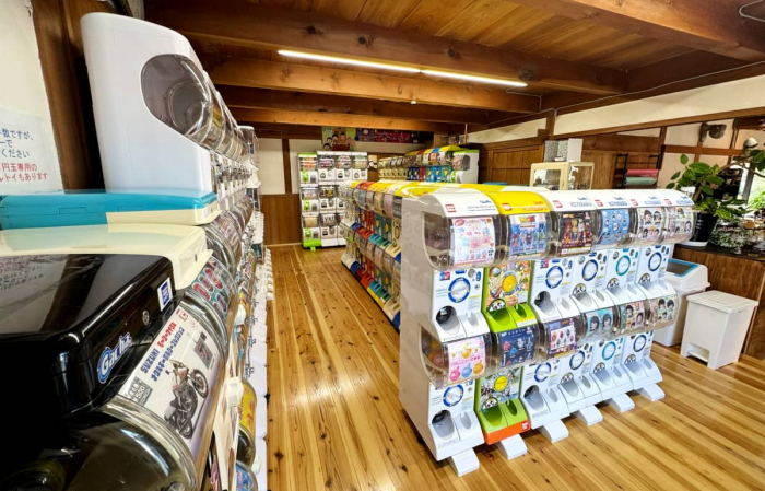 ガーデンショップと店内で繋がる「淡路島カプセルトイ専門店 MOON」。こちらは、平田店主のお父さんである佐野正弘さんと弟さんが運営しています。店内には現在、全部で253種類のガチャポンが並んでいます。
