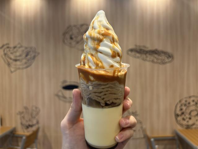 優しくも牛乳の風味香るソフトクリームがキャラメルの甘味と相性抜群。また2層目のマロンペーストの大人な味わいがさらに両者を引き立てます。