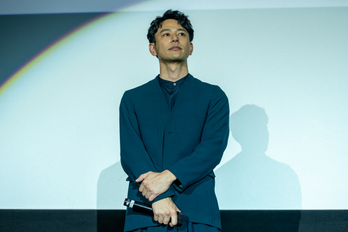 先行上映の終了後、万雷の拍手に迎えられてスクリーンの前に登場した妻夫木さんと大友監督。