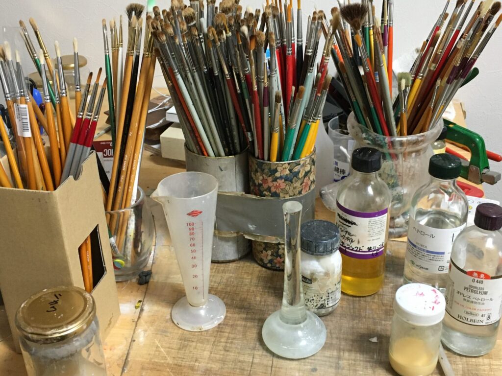 川井さんの作品は多種多様の筆から生まれる