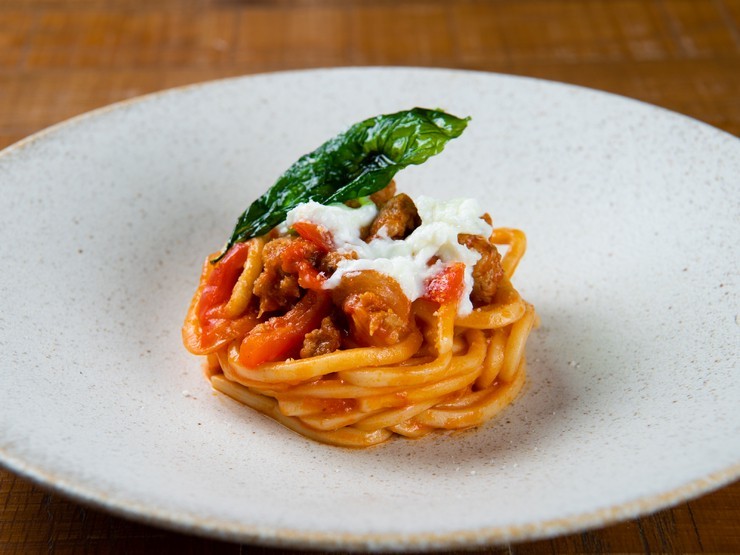 【ALBAROSSA】は、旦過駅から徒歩2分。上質な食材を使ったイタリアンをカジュアルに堪能できるお店です。特にこだわっているのが、パスタ。なかでも、手打ち麺“キタッラ”を使った皿は、肉や野菜のソースの旨みも相まって、味わい深い仕上がりに。毎日内容が変わる『前菜盛り合わせ』もオススメです。
